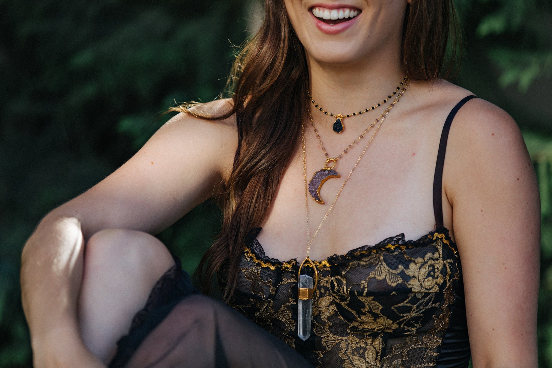 Oracle Collection: Amethyst Moon on an 18" Garnet Chain